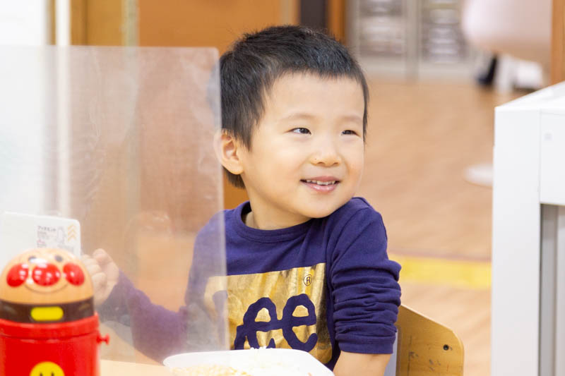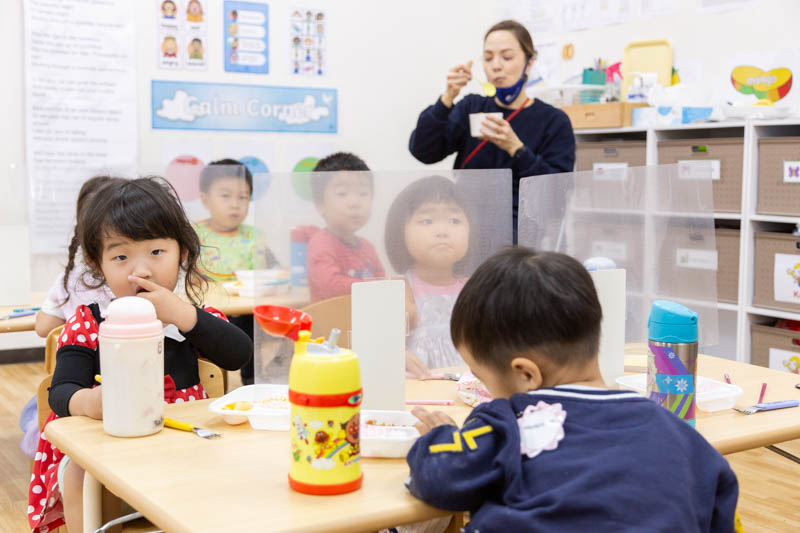 テディベアクラスの子どもたちも先生に手伝ってもらいながら美味しそうにご飯を食べていました。