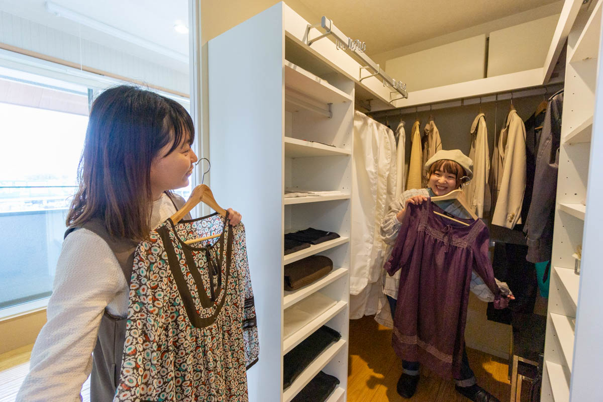 あ!そして洗面室の横がウォークインクローゼットやから、服選びからヘアメイクまで全部ここでできちゃうし♪