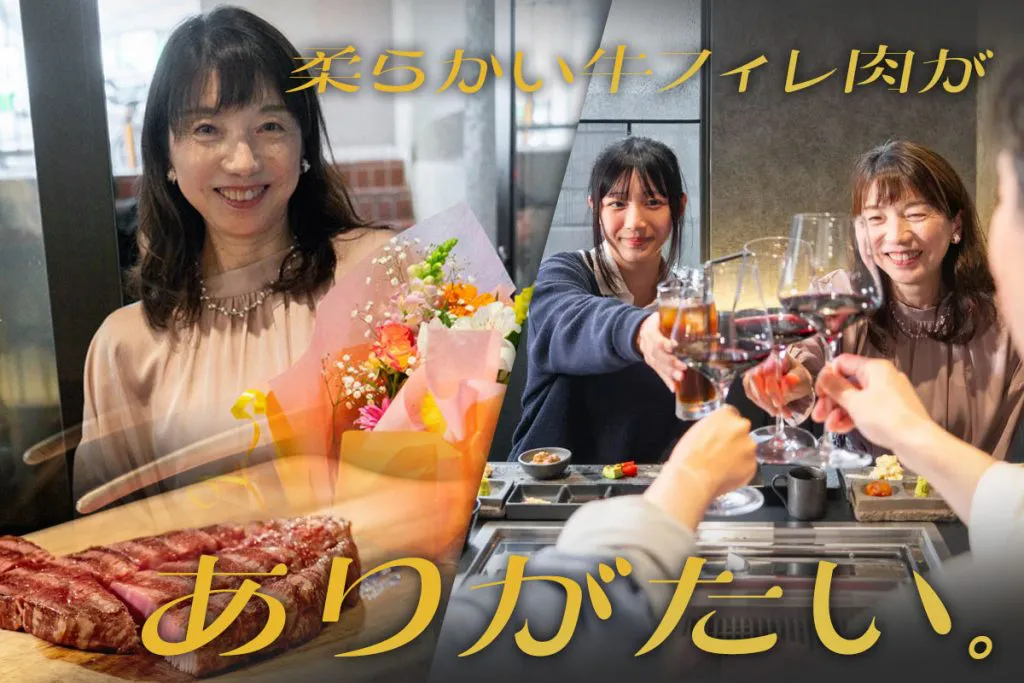 さすがフィレ肉というか、めちゃめちゃ柔らかいです。にも関わらずサシの多い和牛にありがちな脂のしつこさが全く無くて、赤身の良さも取り入れたハイブリッドなお肉、それがフィレ肉。お年寄りや子どもでも食べやすい!