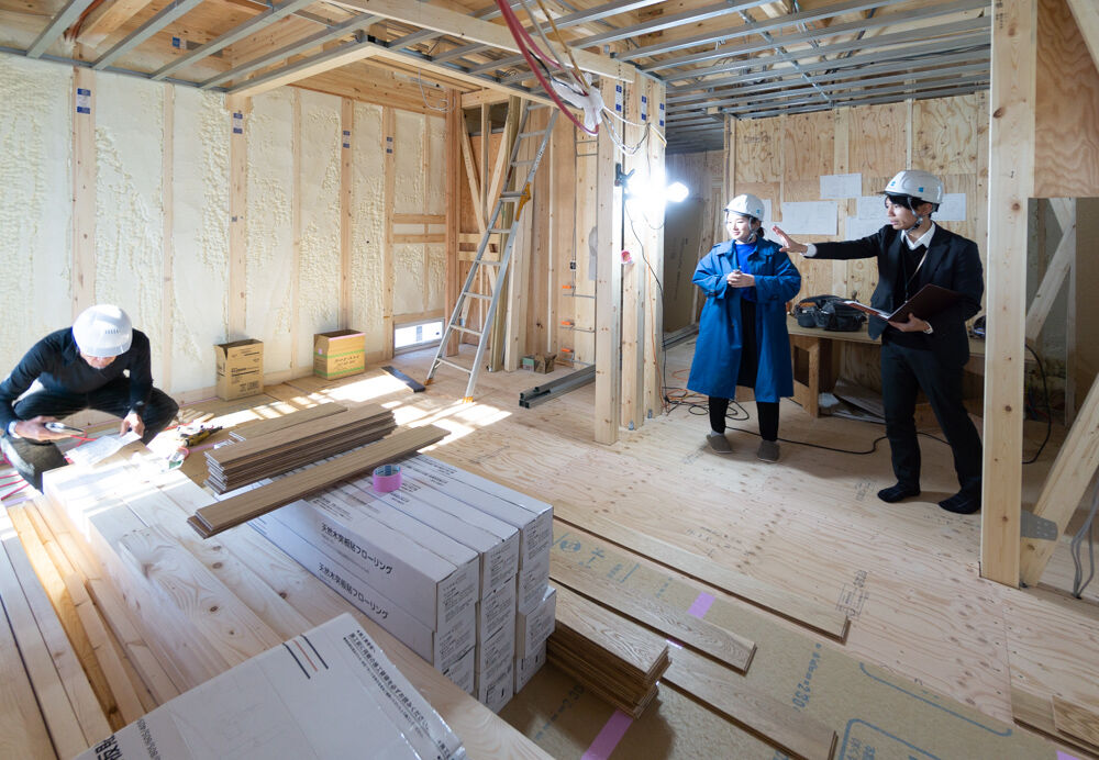 「おおおー!建築中のお家ってこんな感じなんですね〜」