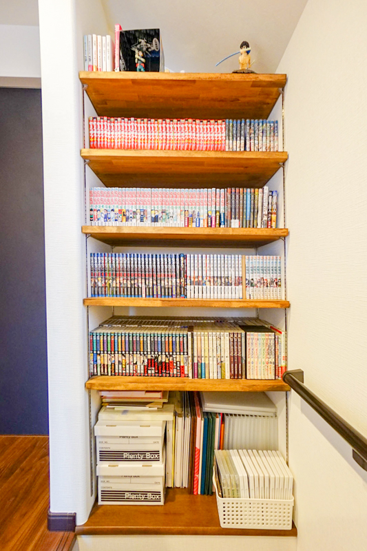 収納は足りましたか?2階のマガジンニッチにはもう本でぎっしりですね!