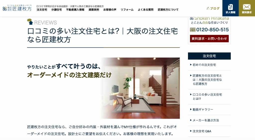 新規で来社されたお客様から「友人から匠建枚方さんのことを聞いてたんですよ」みたいな話がよくあり、ありがたいことに好意的な口コミがすごく多いんです。
