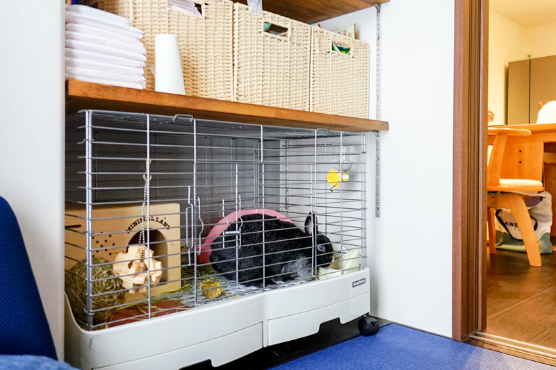 和室の棚は、うさぎのゲージの大きさにぴったり仕様。