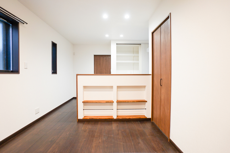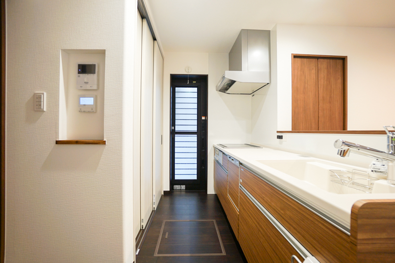 キッチンカウンターのニッチも、ディスプレイ兼収納スペースとして活用していただけてますね!対面キッチンなのでご家族の様子も見ながら料理もできるのもいいですね〜。
