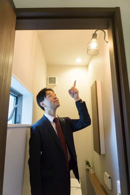 1階のトイレにはこだわりの照明も。