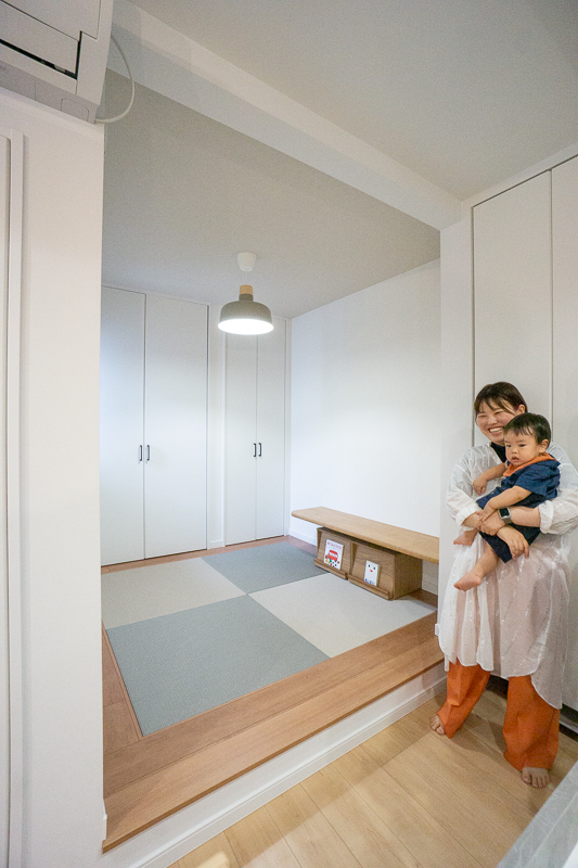 LDK内には小上がりの畳スペースも作ってもらいました!ここは今1才の息子の遊び場になってます。