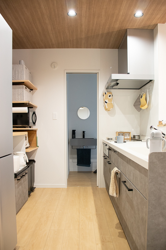 玄関ホールから直接キッチンに行けるようにしてあるので買い物した時の荷物運びがめちゃくちゃ楽になりました!