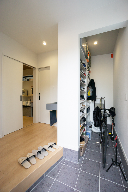 玄関周りには土間収納と、手洗いスペースを設けてます。