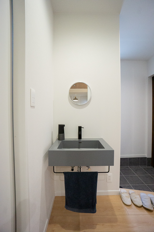 うちは2階に水回りを揃えたので、1階の洗面スペースは家から帰宅してパパッと洗えるぐらいのサイズ感なんですけど。