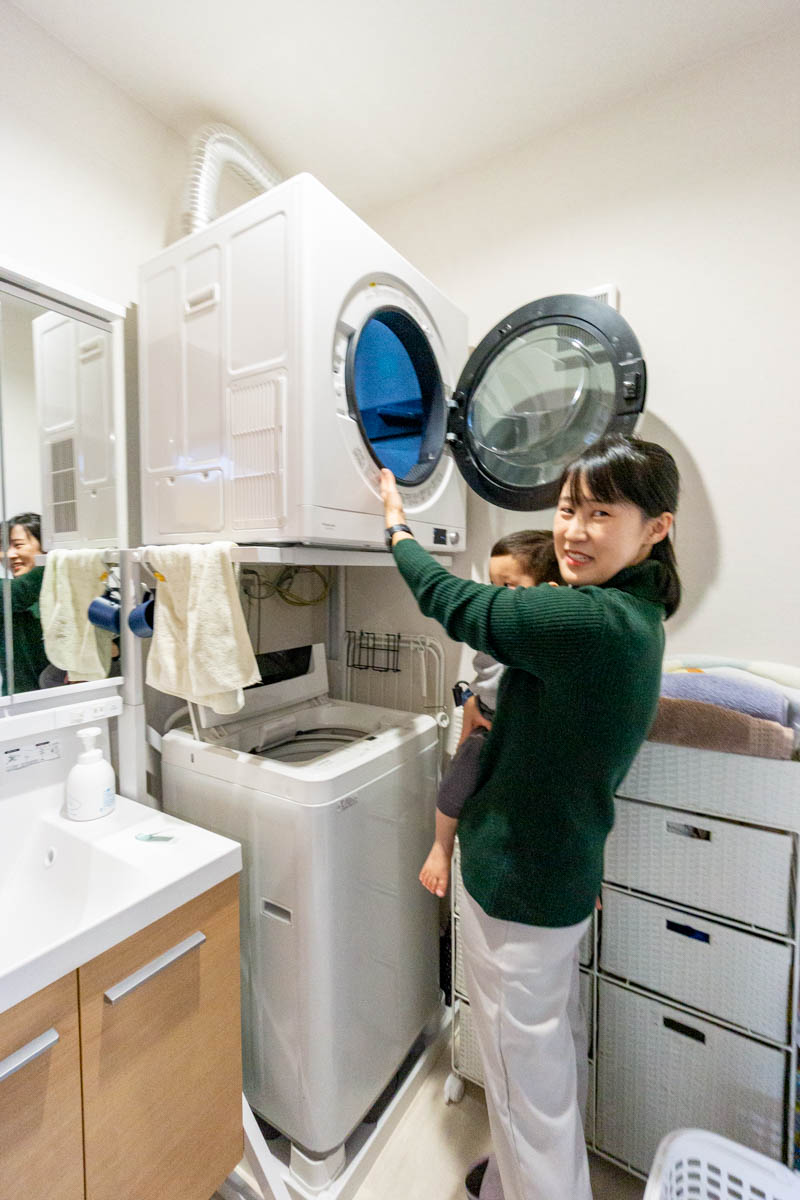 子どもが小さいうちは思うように家事が進まないなって痛感してるんですけど、キッチンを中心に水回りがまとまっていて洗濯が乾太くんでほぼ完結するので、毎日本当に助かっています♪