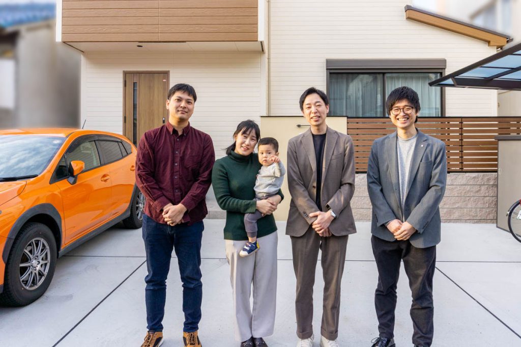 左がT様ファミリー、右が匠建枚方のスタッフさん。