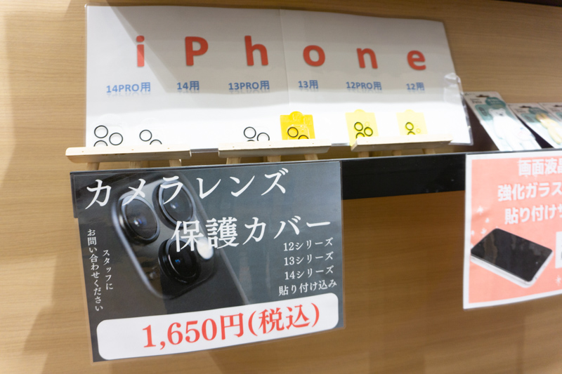 スマホの画面割れなどを防ぐ強化ガラスやカメラレンズの保護カバーなども販売しています。