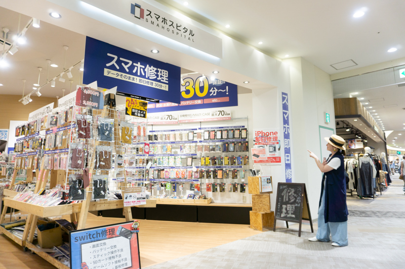 水没したスマホの修理もゲーム機やiPad・MacBookの故障もおまかせできて、スマホアクセサリーもめっちゃそろってるスマホスピタル くずはモール店。