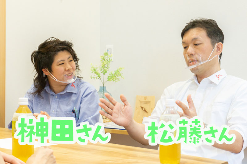 「家づくり寺子屋」について説明してくれるのは記事に何度も登場している榊田さん(左)と縁 創建工房の代表の松藤さん(右)