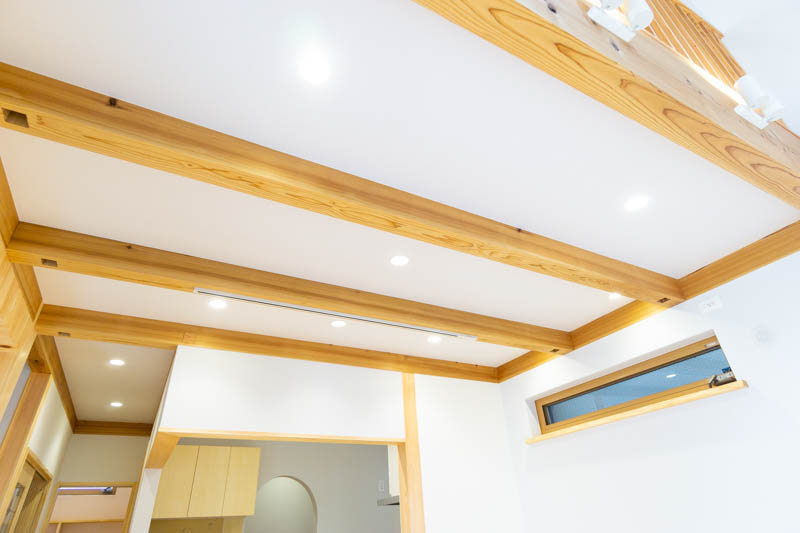 天井に見える梁には和歌山県のスギ、柱にはヒノキを使っています。