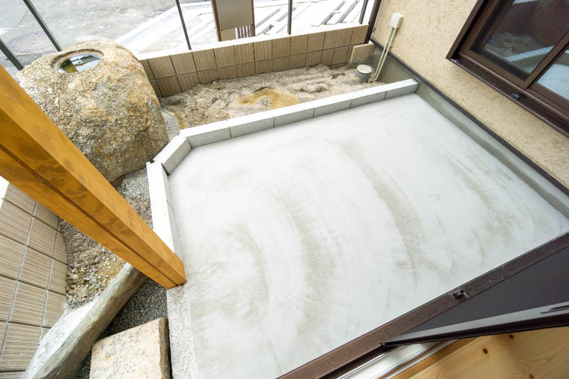 まだ途中なんですが、このあと木の柵や植物がきて、ちょっとした箱庭のような緑あふれる空間になるんですよ。