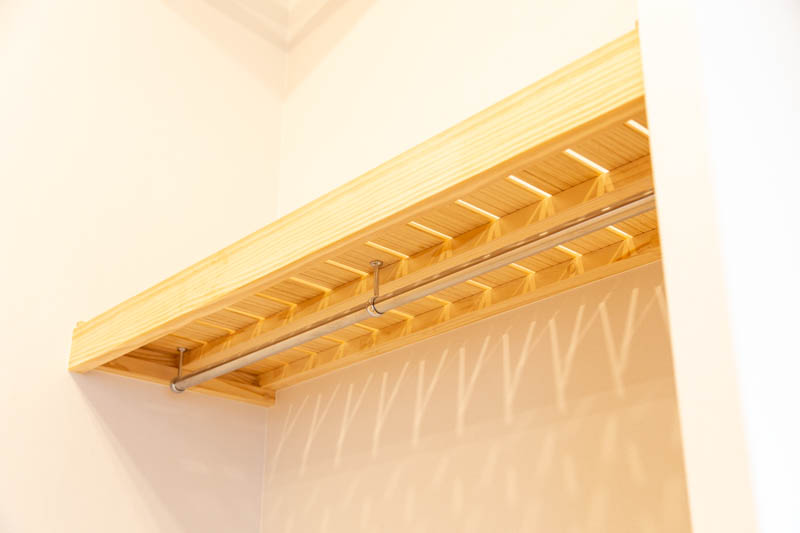 家全体的になんですが、収納部分はこのようにスノコ状にするなどして空気が通りやすい工夫をしています。