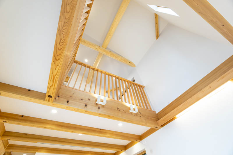 でもこんなに梁も見えるくらい1階から屋根近くまで突き抜けてると、エアコンちゃんと効くのかな、なんて心配なんですが…。