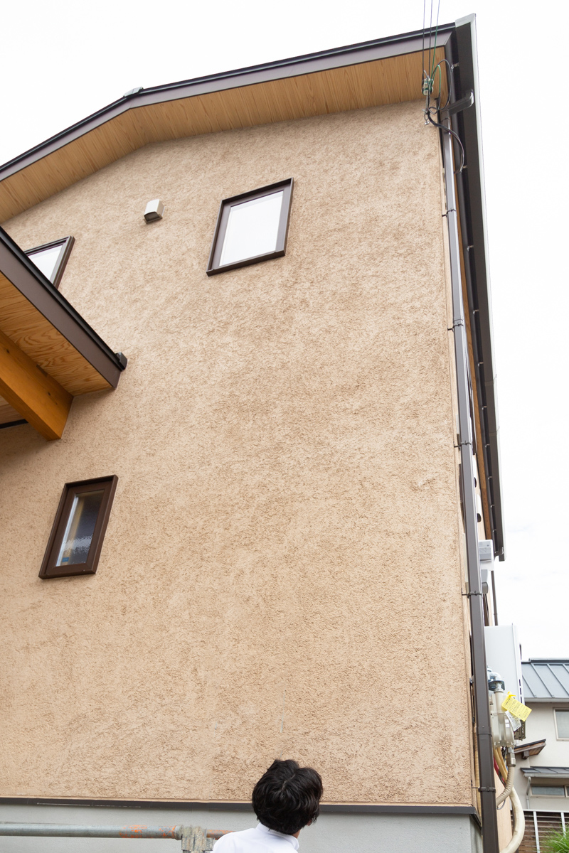 外壁は白洲(しらす)そとん壁という火山灰からできた天然素材で、防水性も断熱・調湿効果も高くて、空気はよく通すものになっています。