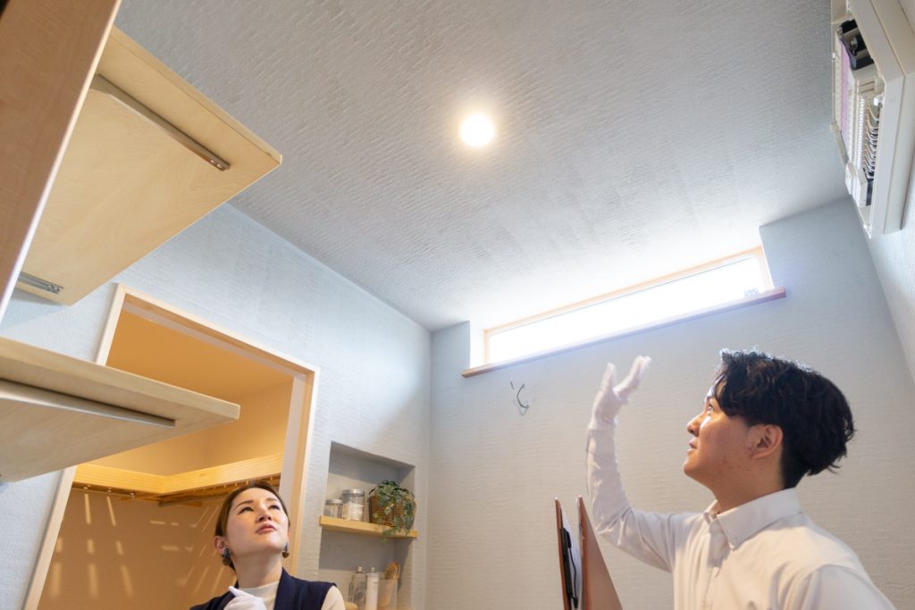 このあと2階を見てもらったらわかるんですが、施主さまの意向で家族がリビングに集まるようなお家になっているんですよ。