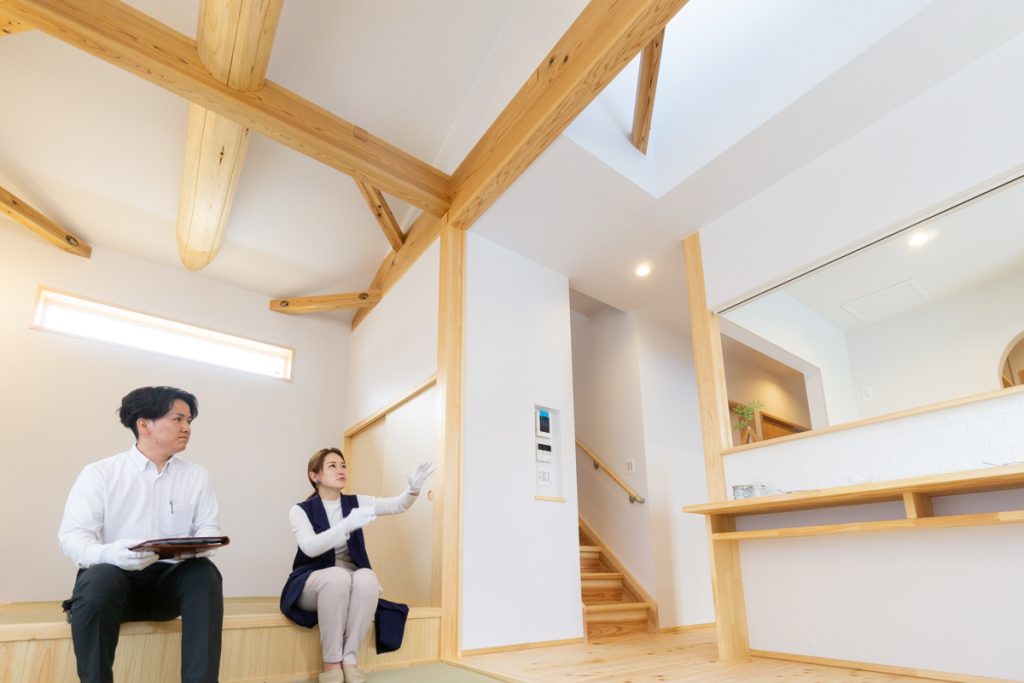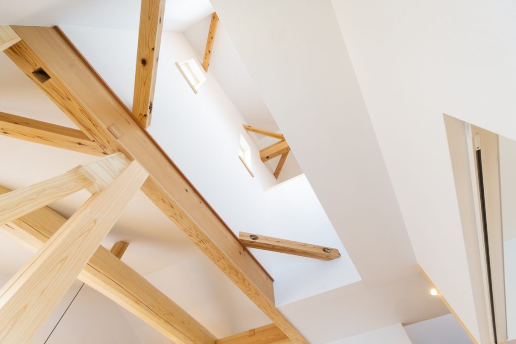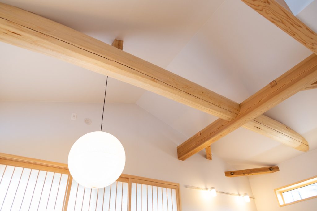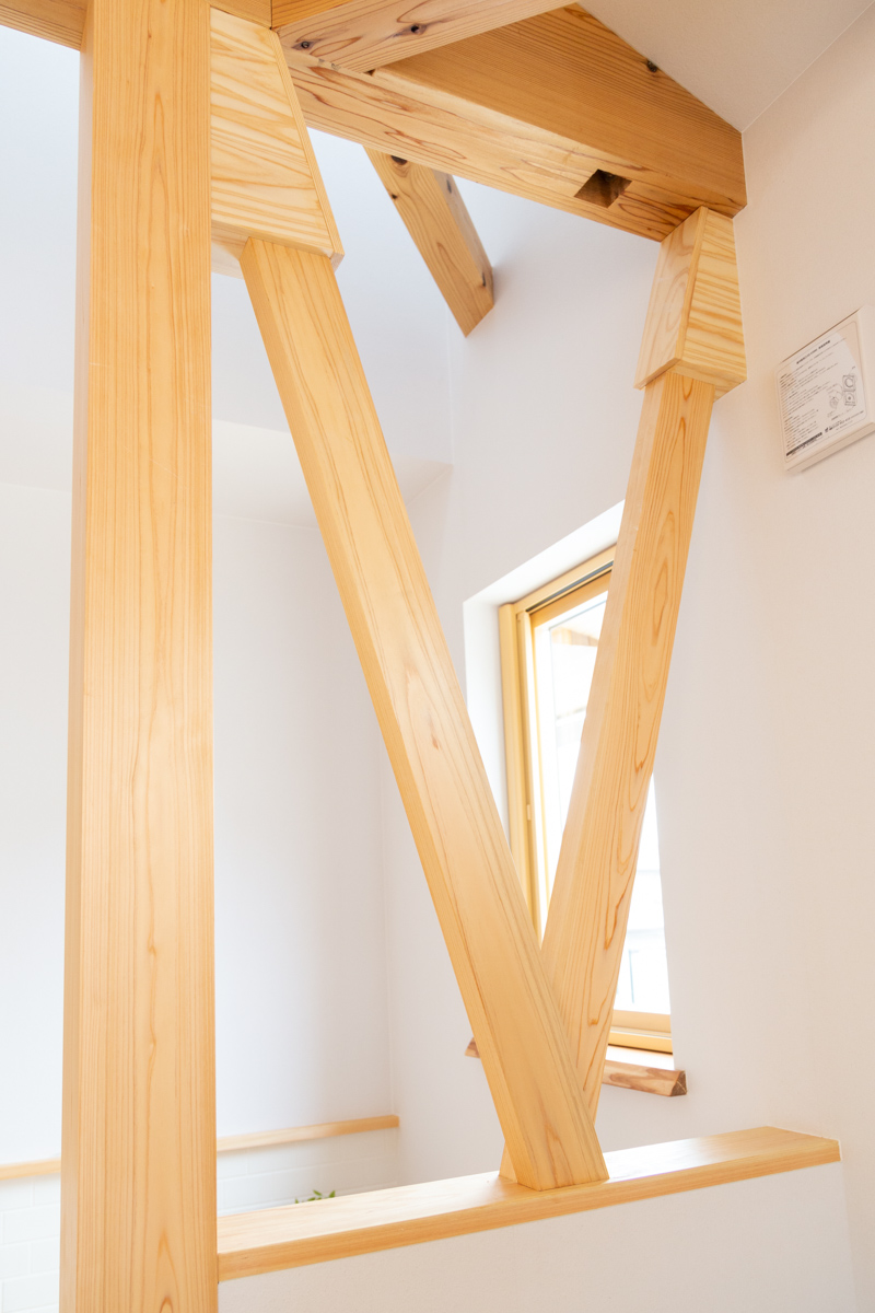 創建工房さんがつくるお家では、柱はヒノキ、梁はスギなど、適材適所で無垢材が使用されています。