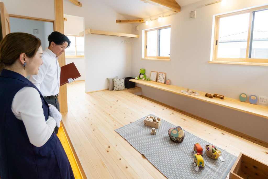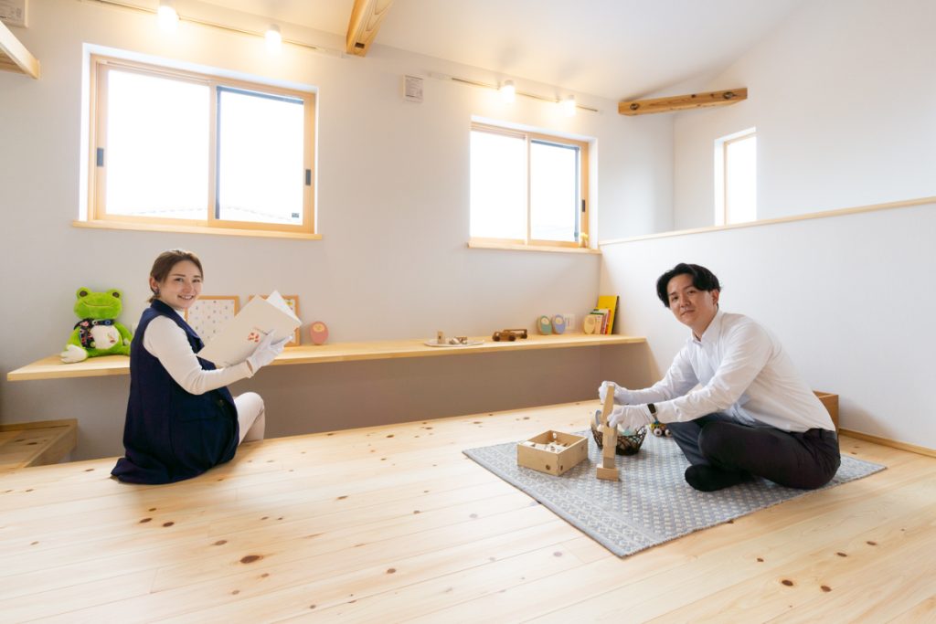 お子さんが小さい間は自分の部屋はいらないと思うので、大きな部屋で過ごしてもらって、大きくなったら壁を作って分割するイメージですね。