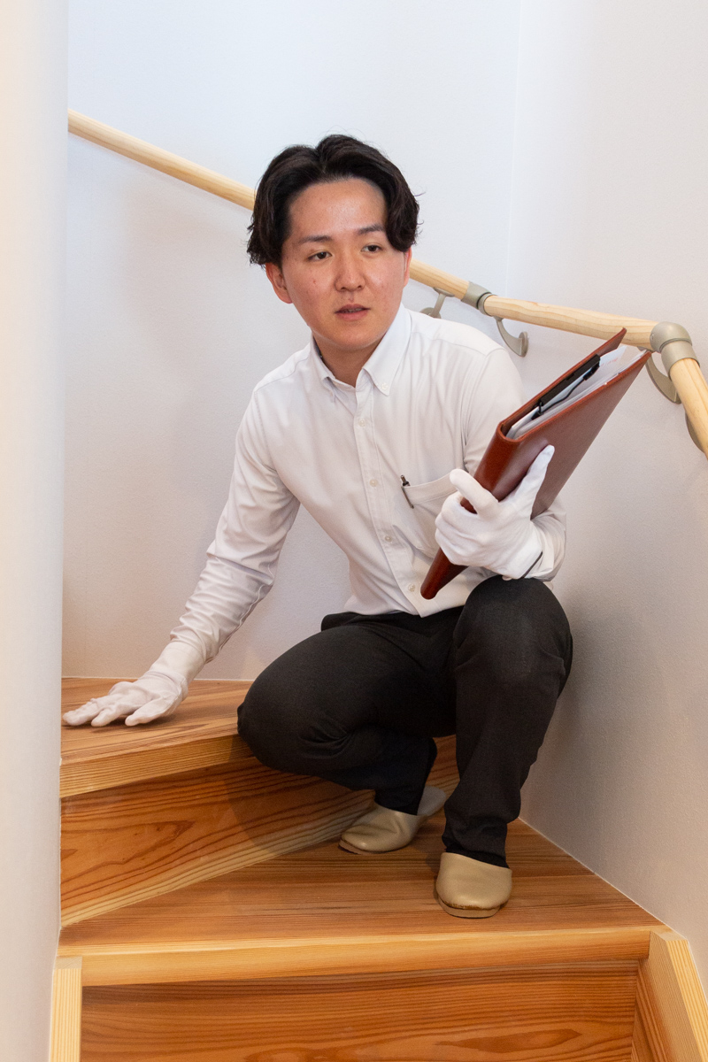 階段はスギを使っているんですが、表面に『浮造り(うづくり)加工』を施してあるので、滑りにくく傷が付きにくくなっています。