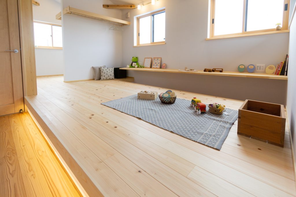 施主さまはお子さんが3人いるので、大きくなったらこのオープンスペースを区切って2部屋にして、奥の部屋と合わせて3部屋にできるようになっています。