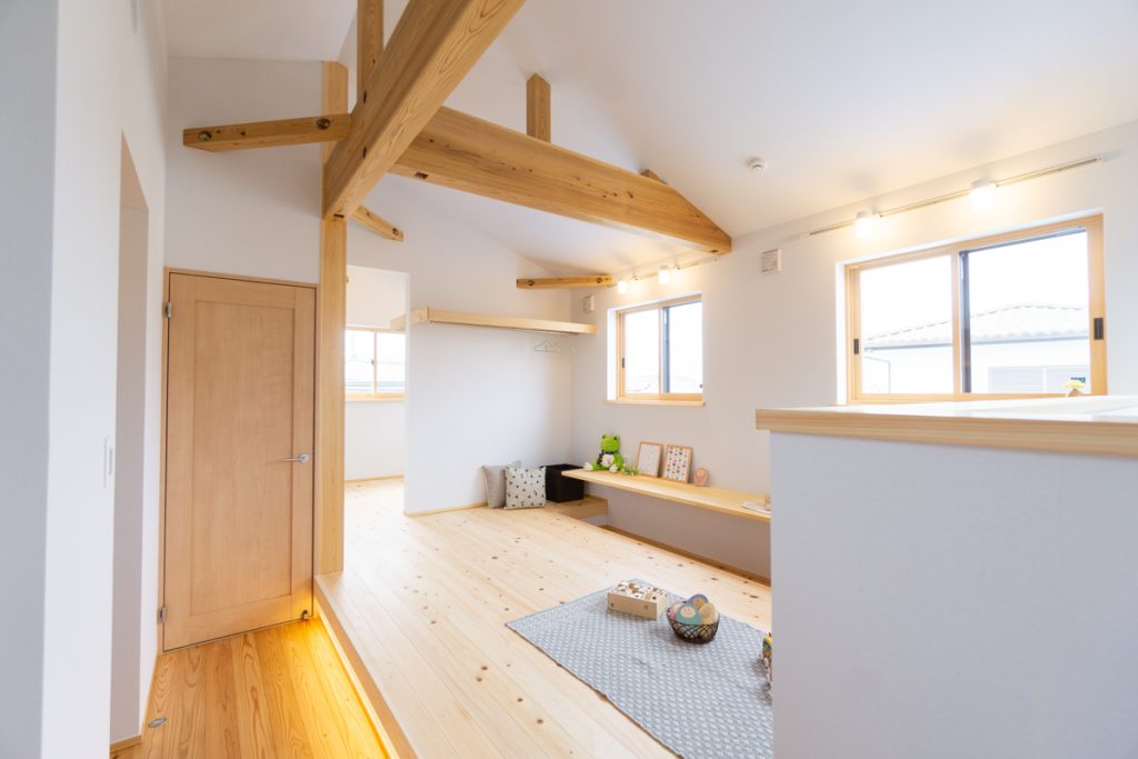 あえてキッチリとした子供部屋ではなく、リビングでみんなが過ごせるようなつくりのお家になっています。