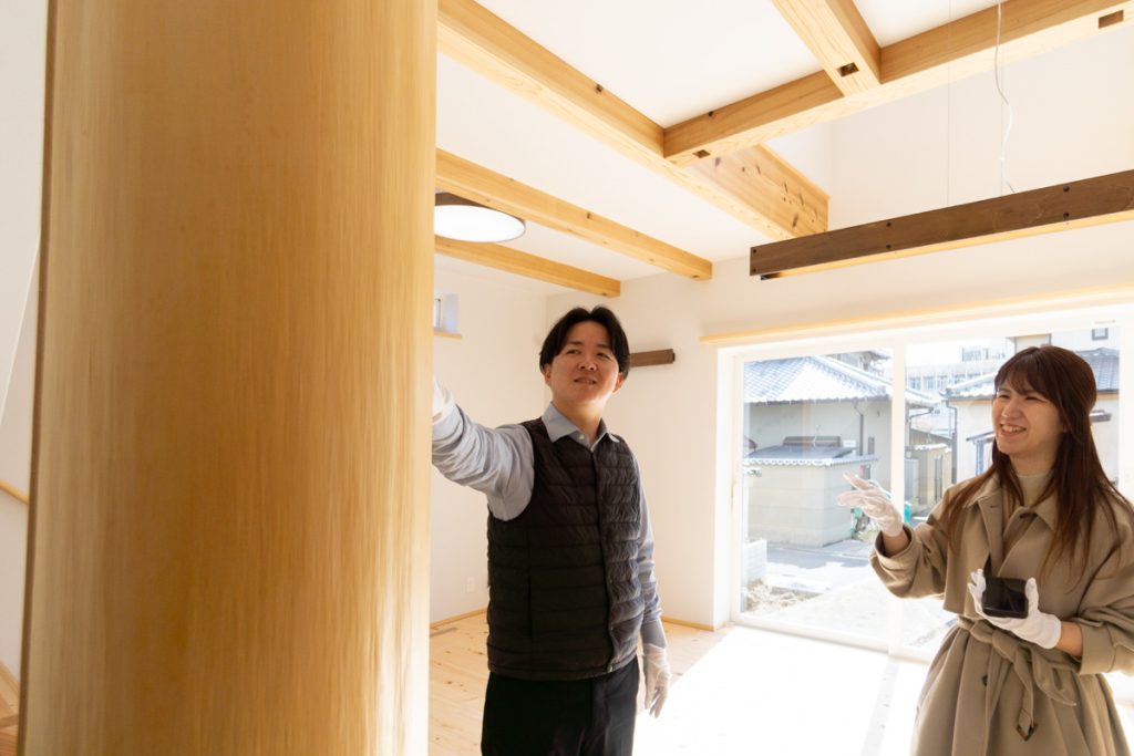 今回はなぎー@ひらつー(左)が「縁・創建工房」の東口(ひがしぐち)さん(右)に新しく完成したお家を案内してもらいました!