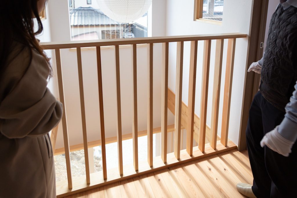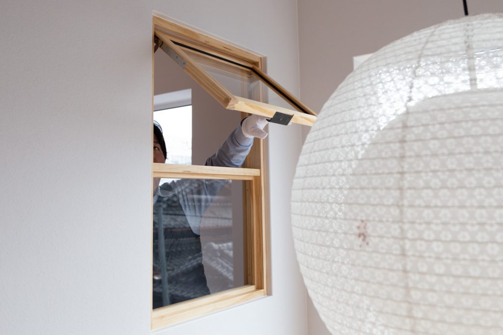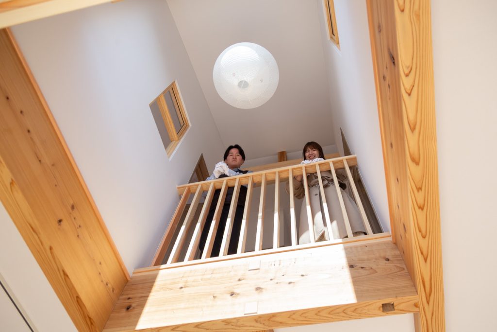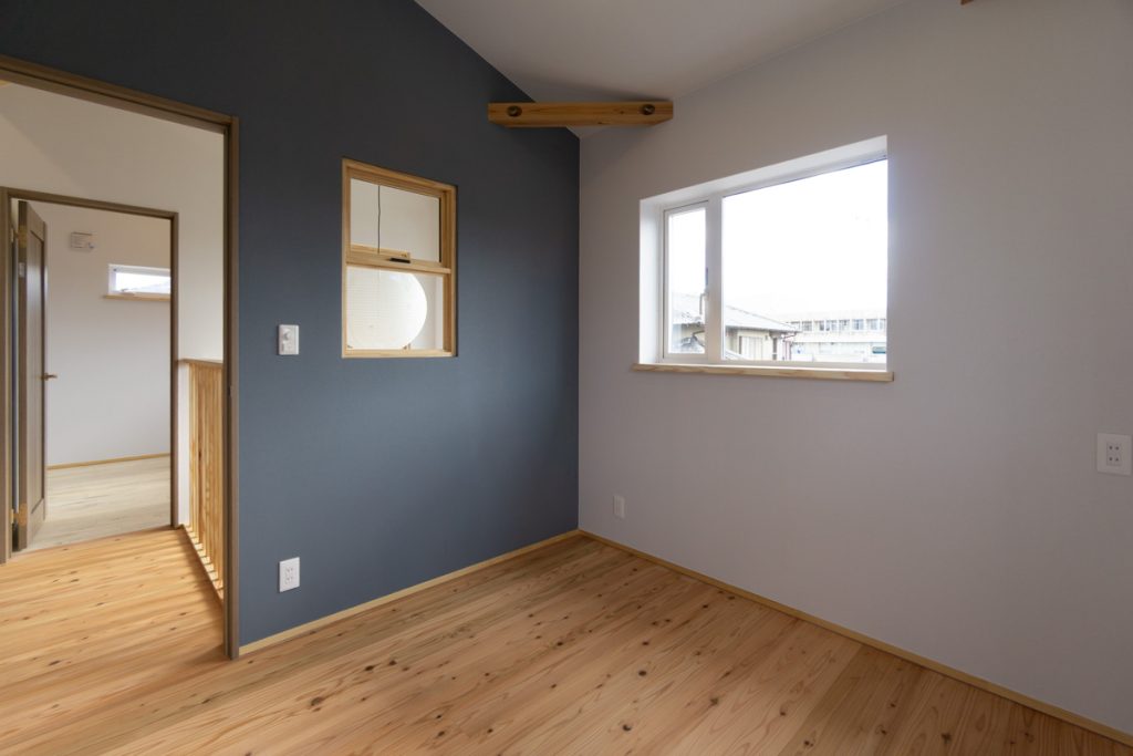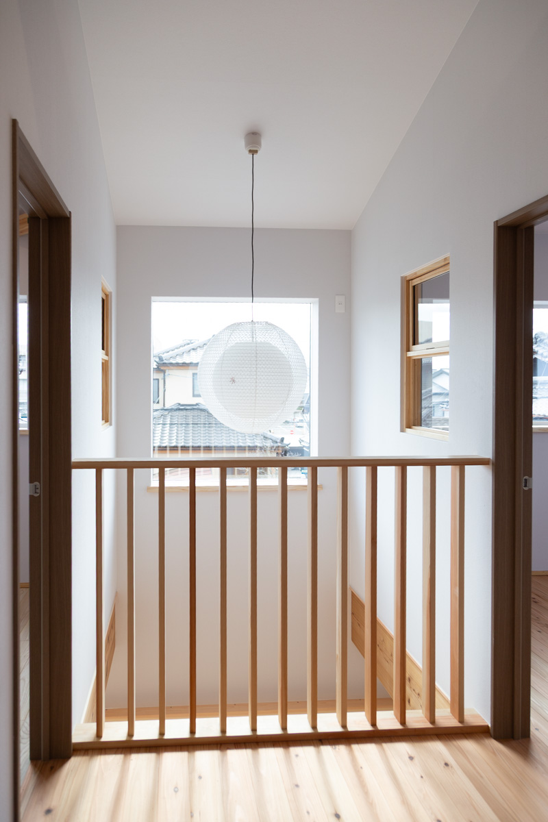 吹き抜けに面した部屋に備えられた造作の窓もオシャレ!