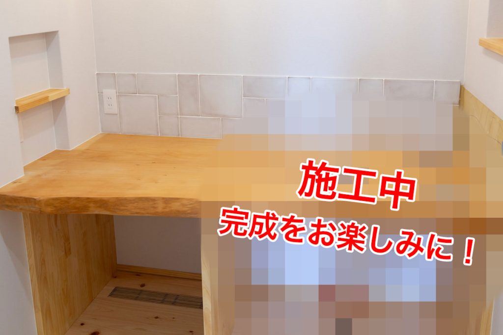 取材時は工事中だった洗面台。ぜひ見学会で完成を見てみてくださいね!