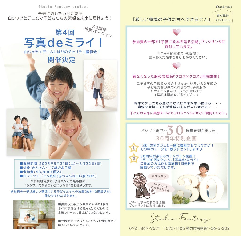 南楠葉にある「写真館スタジオファンタジー」の夏の恒例撮影イベント『写真deミライ!』が今年も開催されます。