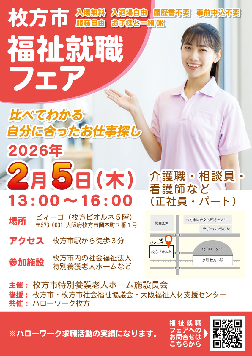 枚方各地の施設が集まるので、家の近くの職場を探したい方にもぴったり♪