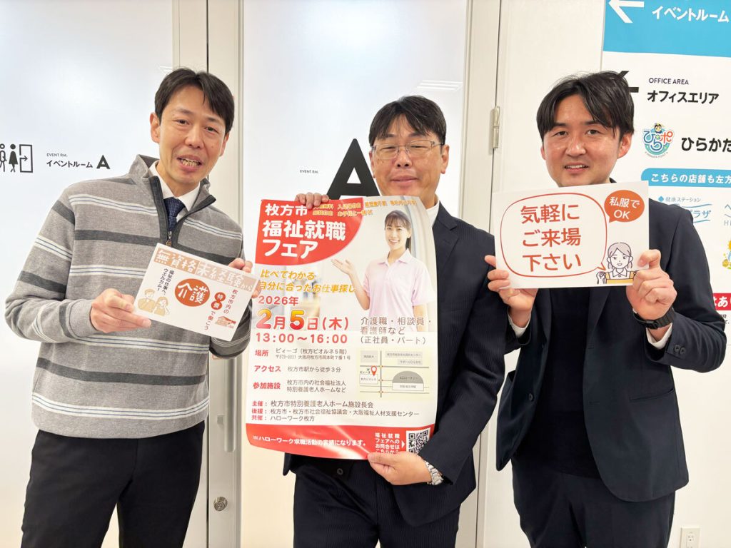 枚方ビオルネの5階にある「ビィーゴ」で『枚方市福祉就職フェア』が開催されるようです。