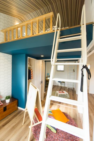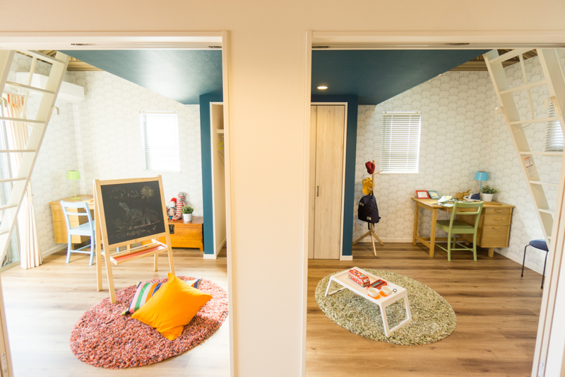 2つの子ども部屋の両方にはしごがついていて、ロフトに上がれるようになっています!!