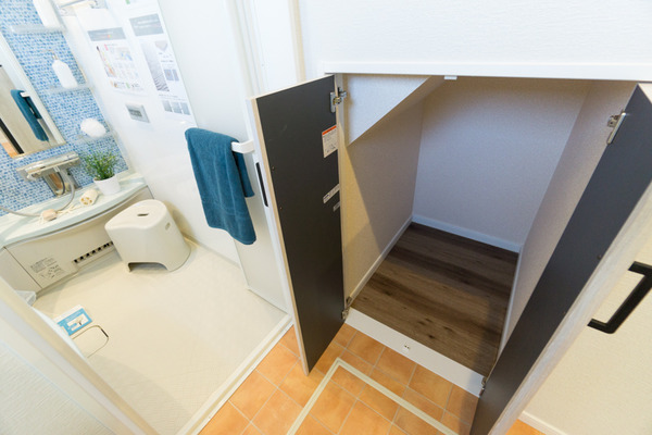 かさ張る洗剤や予備のタオル等を入れておける収納も嬉しいですね〜!