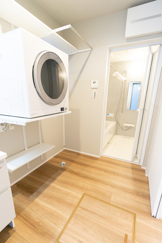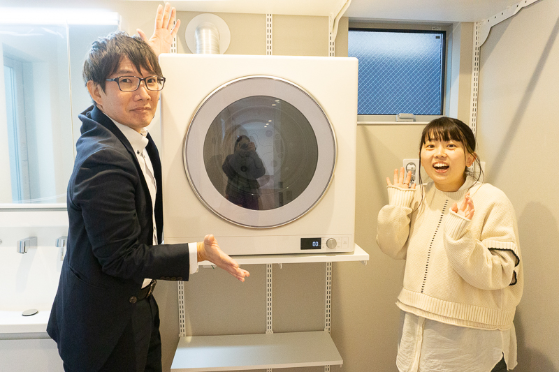 つづいて洗面室ですが、こちらのお家では「乾太くん」が標準装備!