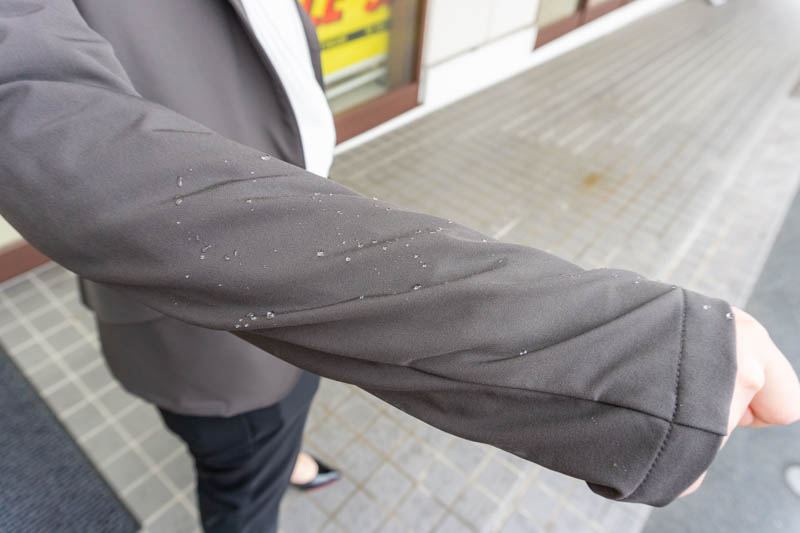 薄くて着やすいしオシャレな色合いなのに、レインコート並みの撥水力ってことですよね!これは便利〜♪