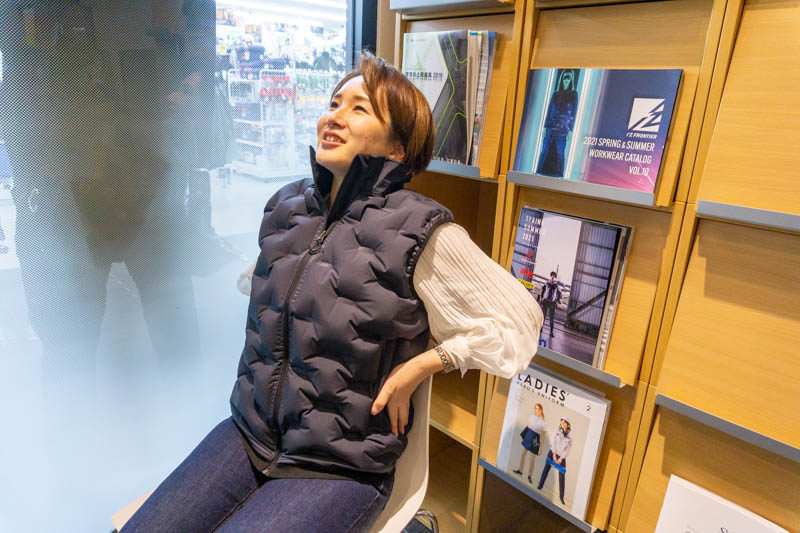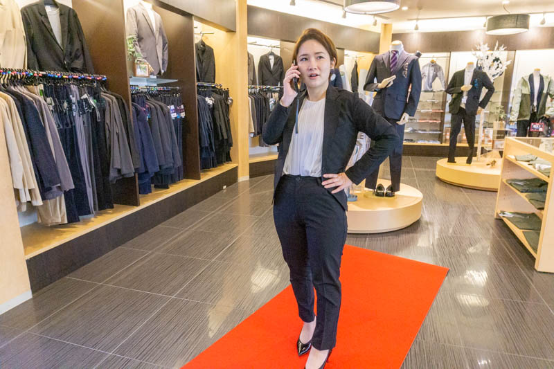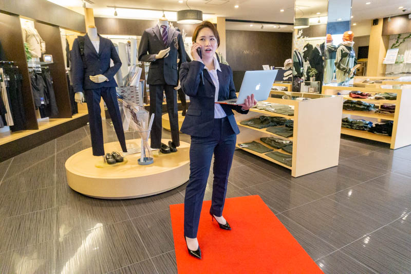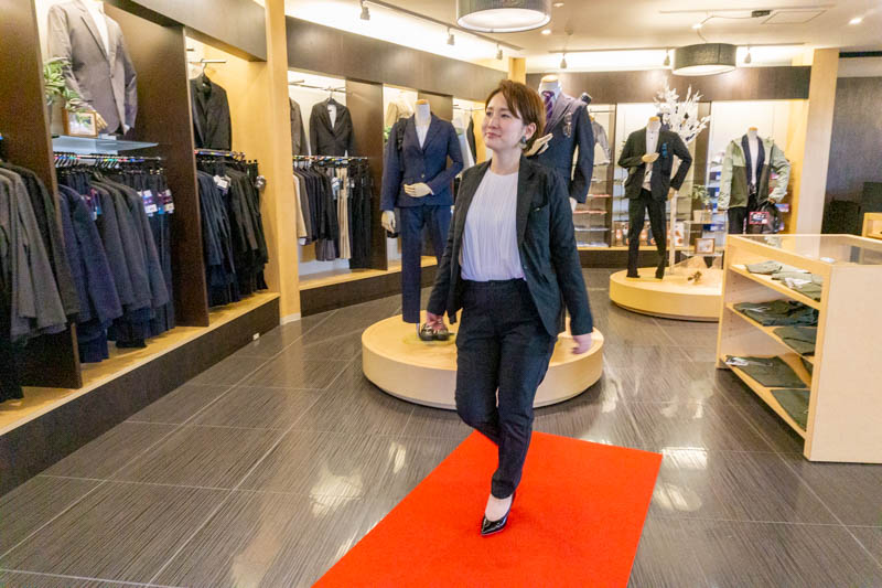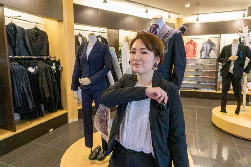 作業服などの品揃えはそのまま、店内の一角に機能的なスーツや日常使いもできるお洋服のショールームが新たにできました♪