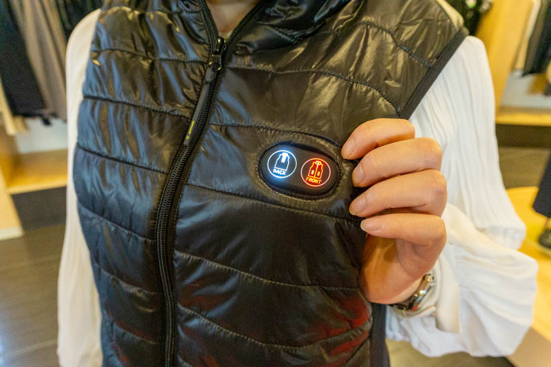 胸元のボタンで、首〜背中と前のポケット部分をそれぞれ温度設定可能。