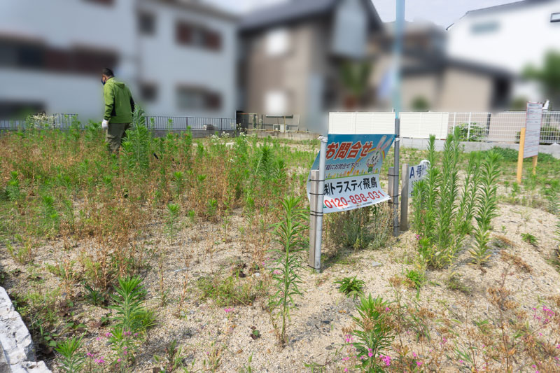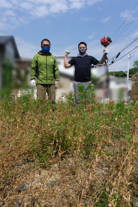 「トラスティ飛鳥ではこのように月1ペースで預かっている物件の掃除や草刈りなど管理もしっかりやらせてもらってます!