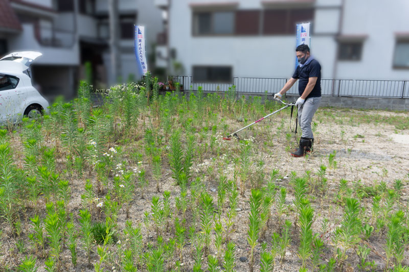 「夏場はかなり草が伸びるのが早いので定期的に草刈りをしていますね〜」