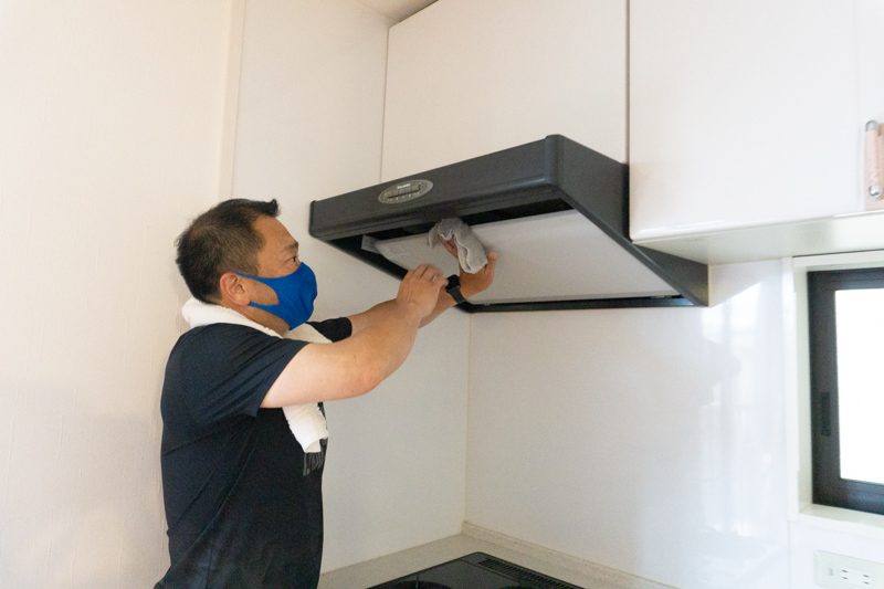 「見逃しがちな細かいキッチンまわりもしっかり拭きます!