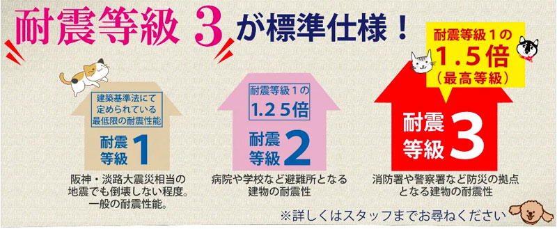 「耐震等級3の長期優良住宅なので安心ですよー!!」