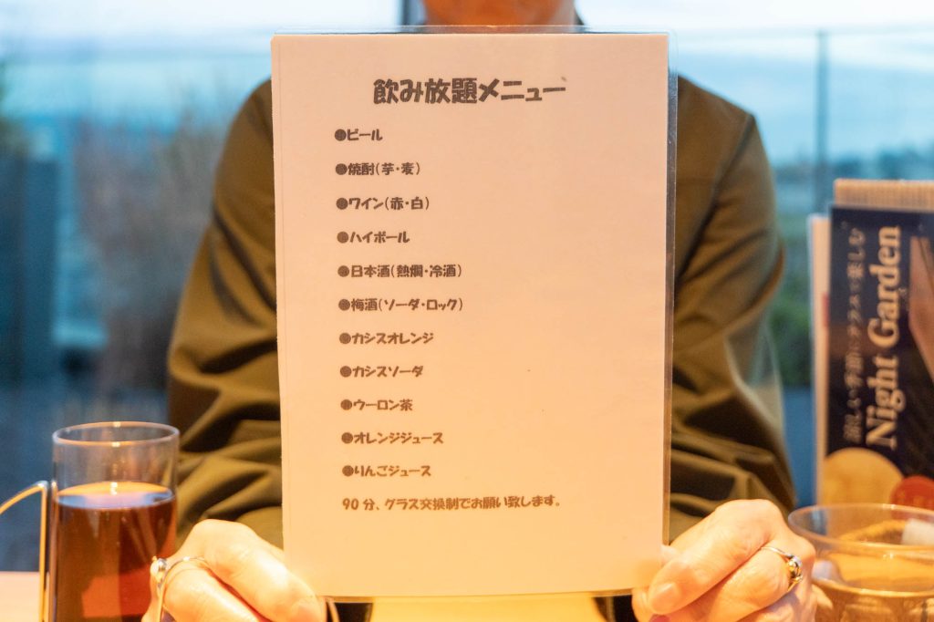ドリンクの飲み放題メニュー↓