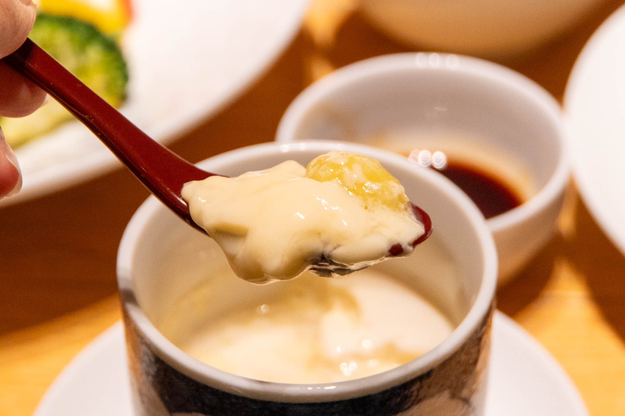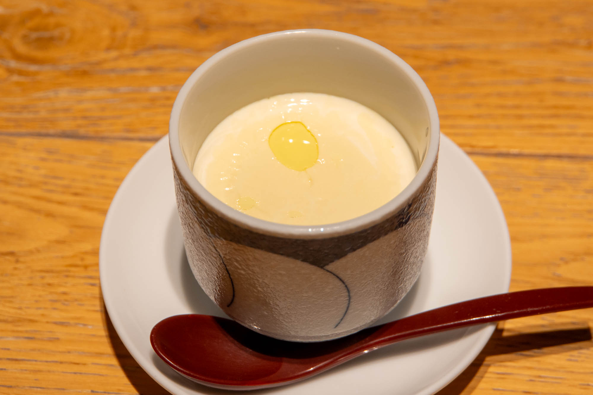 「これは本当に驚きました。なめらかな茶碗蒸しに豆乳ソースが加わることで、まろやかさが一段と深まり、小さなおもちのぷるっとした食感も良いアクセント!」