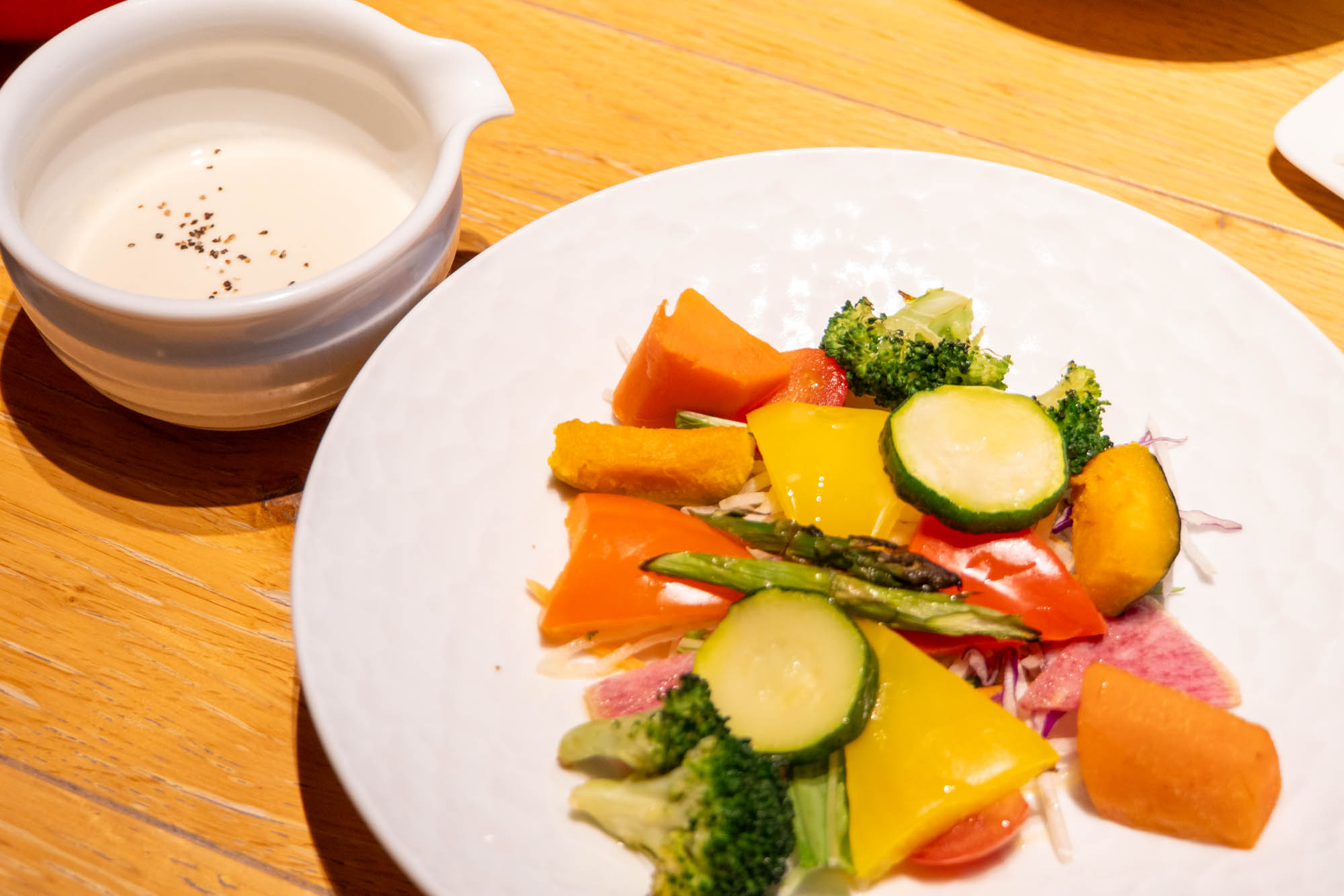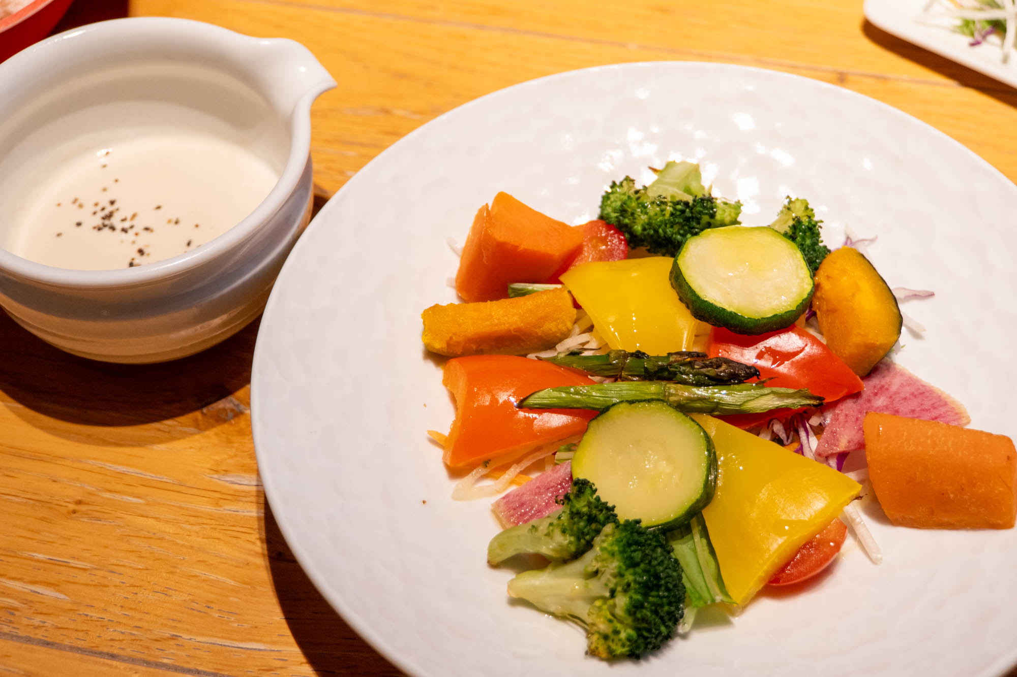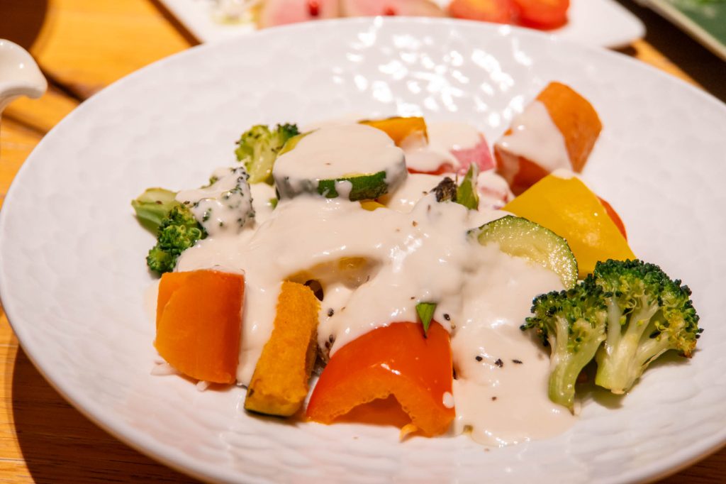こちらも共通メニューの「温野菜 豆乳バーニャフレッダ」。
