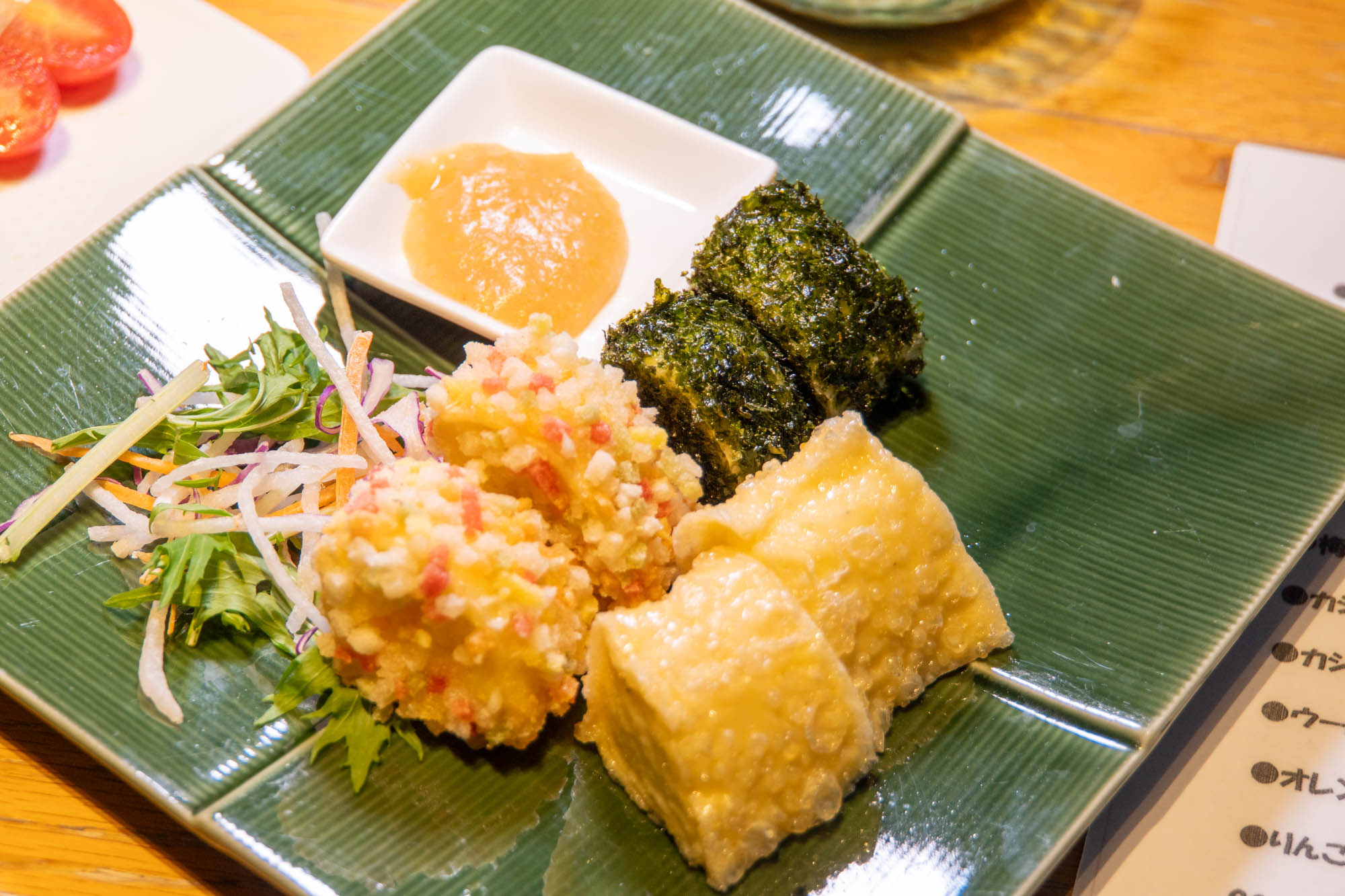 そしてこのかわいい揚げ物。味も食感も楽しめる一品でして…