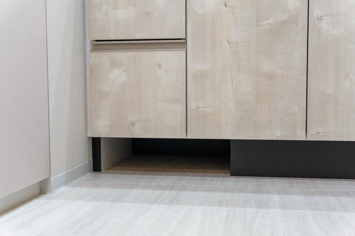 しかも洗面台の中もいっぱい収納あるし、洗面台下には体重計用スペースもあるんやね!備え付けの収納内に全部収められると脱衣室が広く使えて嬉しい〜!